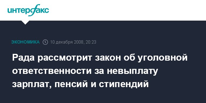 Рада рассмотрит закон об уголовной ответственности за невыплату зарплат, пенсий и стипендий