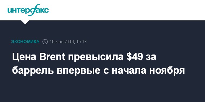 Москва. 16 мая. INTERFAX.RU - Цена нефти эталонной марки Brent превысила $49 за баррель впервые с пятого ноября прошлого года.