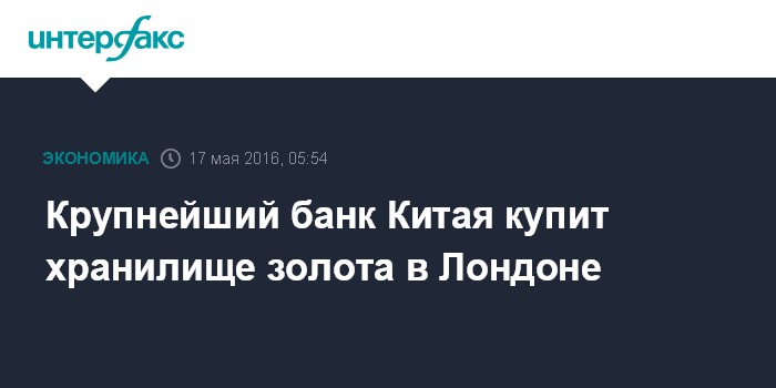Москва. 17 мая. INTERFAX.RU - Китайский банк ICBC купит хранилище золота в Лондоне для развития своего бизнеса, связанного с драгоценными металлами, сообщила во вторник BBC News.