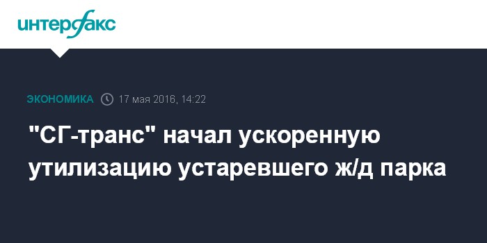 Москва. 17 мая. INTERFAX.RU - АО "СГ-транс" (СГТ) активно списывает невостребованный подвижной состав, сообщил в своем квартальном отчете совладелец железнодорожного оператора - АФК "Система".
