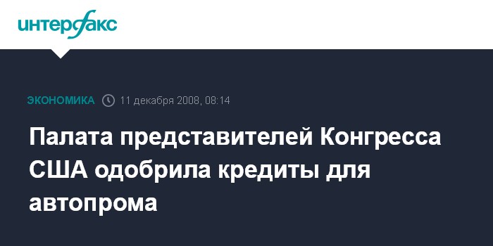 Москва. 11 декабря. INTERFAX.RU - Палата представителей Конгресса США 237 голосами "за" и при 170 "против" одобрила в среду законопроект о предоставлении кредитов на сумму в $14 млрд автомобильной промышленности и направила его для рассмотрения в Сенат, верхнюю палату американского парламента.