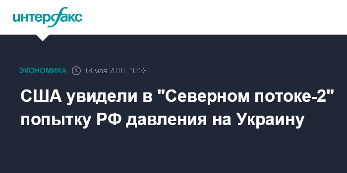 Москва. 18 мая. INTERFAX.RU - Проект "Северный поток-2" не является коммерческим проектом, его целью может являться давление российской стороны на Украину, считает спецпосланник и координатор Госдепартамента США по международной энергетике Амос Хочстейн.