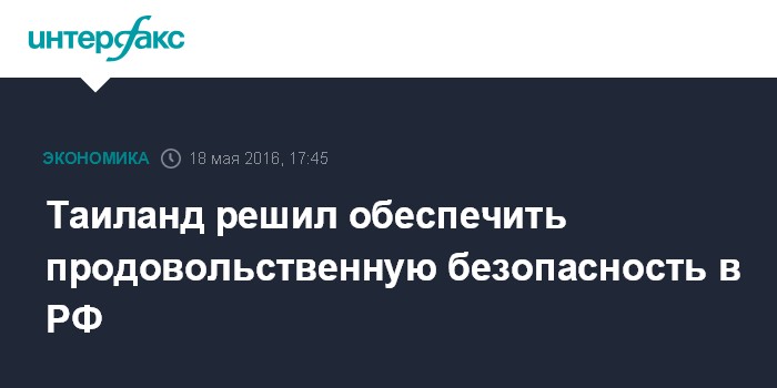 Таиланд решил обеспечить продовольственную безопасность в РФ