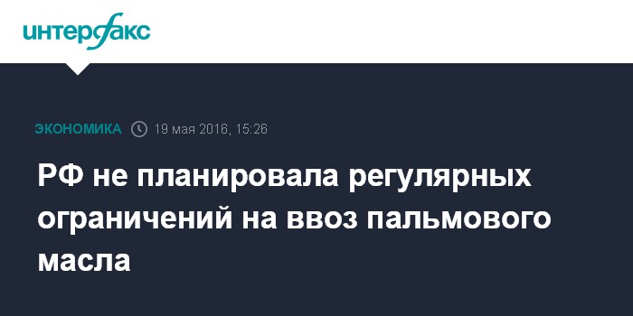 РФ не планировала регулярных ограничений на ввоз пальмового масла