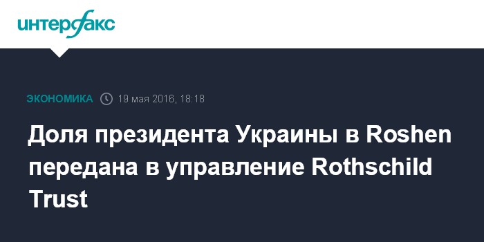Москва. 19 мая. INTERFAX.RU - Фонд "Прайм Эссетс Капитал", бенефициаром которого является президент Украины Петр Порошенко, завершил передачу его 85%-ной доли в кондитерской корпорации Roshen в управление в независимый "слепой" траст (blind trust) компании Rothschild Trust.
