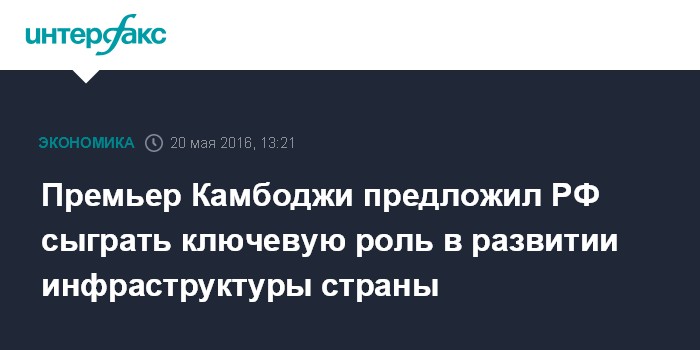 Москва. 20 мая. INTERFAX.RU - Премьер-министр Камбоджи Хун Сен призвал Россию сыграть ключевую роль в восстановлении инфраструктуры Камбоджи.