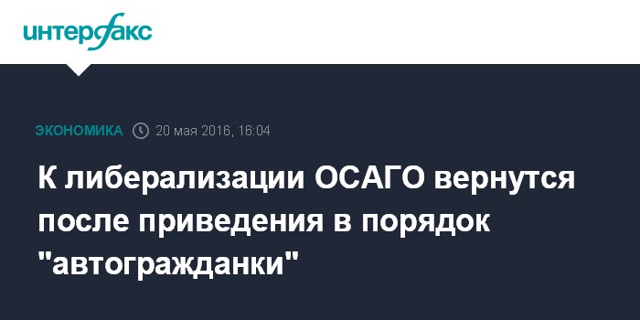 К либерализации ОСАГО вернутся после приведения в порядок "автогражданки"