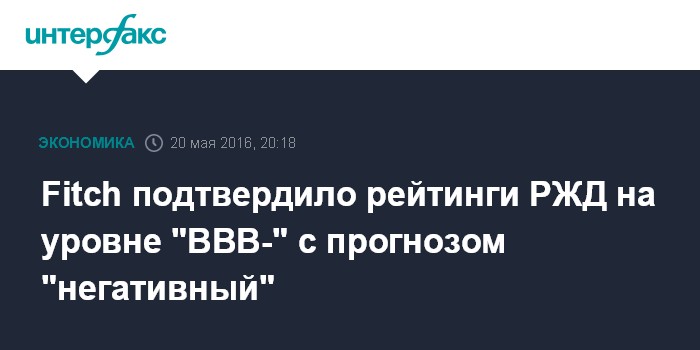 Москва. 20 мая. INTERFAX.RU - Международное рейтинговое агентство Fitch подтвердило долгосрочные рейтинги дефолта эмитента (РДЭ) ОАО "РЖД" (MOEX: RZHD) в иностранной и национальной валюте на уровне "BBB-", сообщается в пресс-релизе агентства.