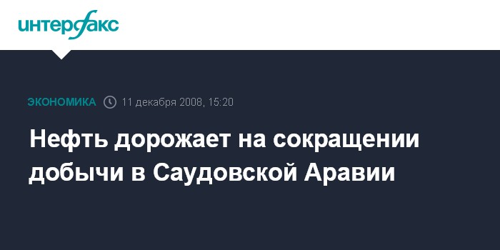 Москва. 11 декабря. INTERFAX.RU - Нефть дорожает на сокращении добычи в Саудовской Аравии, которая снизила производство в ноябре более значительно, чем прогнозировали трейдеры и аналитики сообщило агентство Bloomberg.