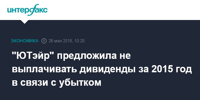 "В связи с отсутствием прибыли ПАО "Авиакомпания "ЮТэйр" за 2015 год прибыль не распределять. Дивиденды на обыкновенные именные акции за 2015 год не начислять и не выплачивать", - рекомендовал совет директоров.