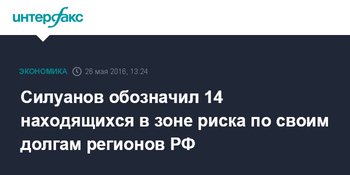 Москва. 26 мая. INTERFAX.RU - Минфин указал на 14 субъектов РФ, государственный долг которых превышает доходы на 100%.