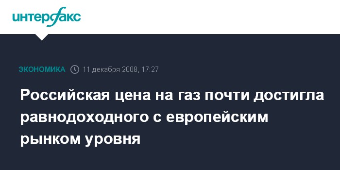 Российская цена на газ почти достигла равнодоходного с европейским рынком уровня