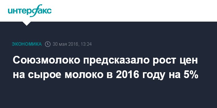 Союзмолоко предсказало рост цен на сырое молоко в 2016 году на 5%