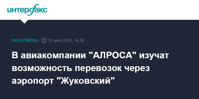 Москва. 31 мая. INTERFAX.RU - Авиакомпания "АЛРОСА" может стать пятым резидентом нового московского аэропорта "Жуковский".