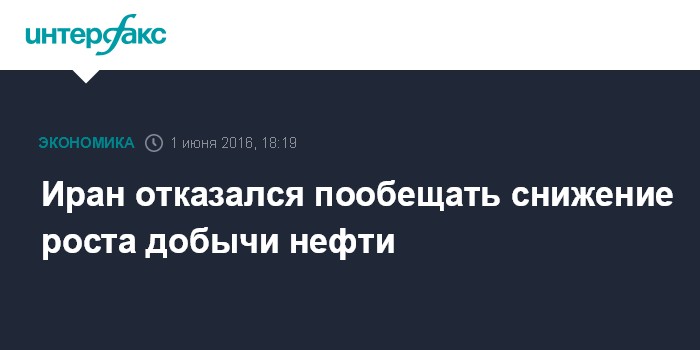 Москва. 1 июня. INTERFAX.RU - Иран не будет брать обязательств по остановке роста нефтедобычи, передает иранское агентство IRNA со ссылкой на представителя Ирана в ОПЕК Мехди Асали.