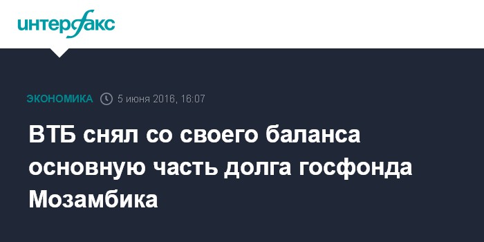 ВТБ снял со своего баланса основную часть долга госфонда Мозамбика