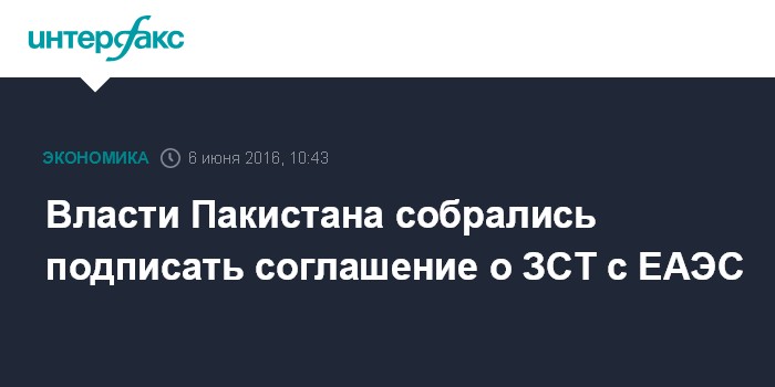 Власти Пакистана собрались подписать соглашение о ЗСТ с ЕАЭС