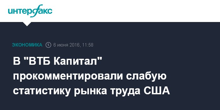 Москва. 6 июня. INTERFAX.RU - Слабая статистика по американскому рынку труда уменьшила опасения инвесторов относительно возможности повышения ФРС США ставки этим летом, что подстегнуло рост аппетитк риску, считают аналитики "ВТБ Капитал".