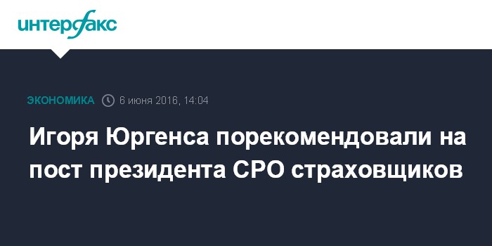 Игоря Юргенса порекомендовали на пост президента СРО страховщиков
