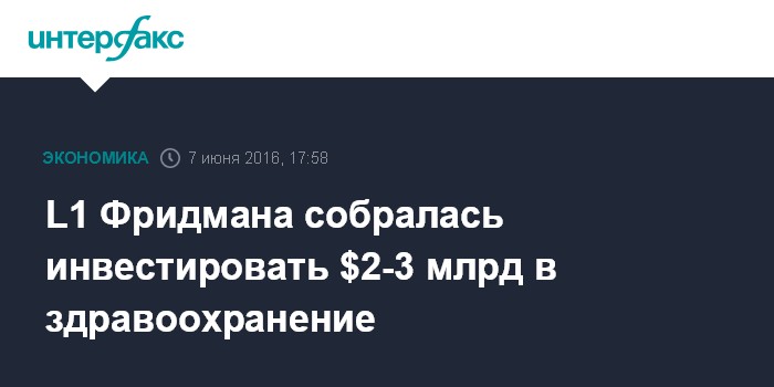 L1 Фридмана собралась инвестировать $2-3 млрд в здравоохранение