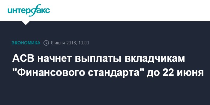 АСВ начнет выплаты вкладчикам "Финансового стандарта" до 22 июня