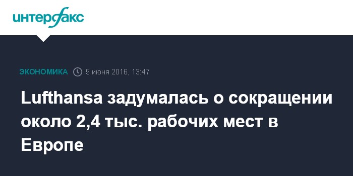 Москва. 9 июня. INTERFAX.RU - Deutsche Lufthansa AG рассматривает возможность сокращения до 2,4 тыс. рабочих мест в подразделении обеспечения бортпитания в Европе. Число соответствующих предприятий в регионе будет уменьшено с 23 до семи с целью восстановления рентабельности, пишет газета Franfurter Allgemeine Zeitung.