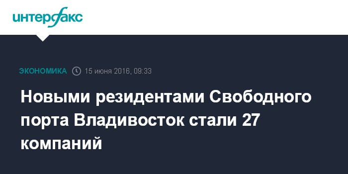 Новыми резидентами Свободного порта Владивосток стали 27 компаний