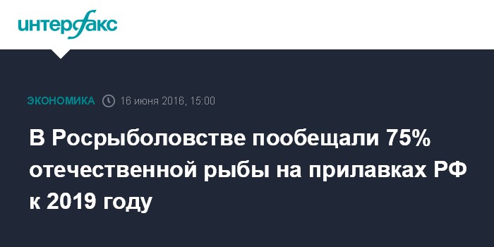 Москва. 16 июня. INTERFAX.RU - Доля российской рыбы в 2017-2018 годах на отечественном рынке может увеличиться до 75% с сегодняшних 68%, прогнозирует замминистра сельского хозяйства РФ - руководитель Росрыболовства Илья Шестаков.