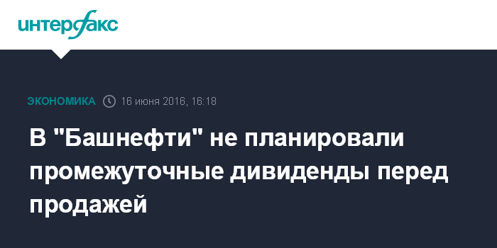 Москва. 16 июня. INTERFAX.RU - "Башнефть" не рассматривает выплату промежуточных дивидендов перед продажей госпакета.