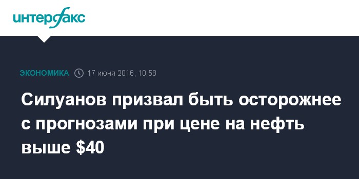 Москва. 17 июня. INTERFAX.RU - Учет прогнозной цены на нефть выше $40 за баррель для формирования бюджета РФ 2017-2019 годов может создать риски для его исполнения в случае снижения цен, сообщил журналистам министр финансов РФ Антон Силуанов.