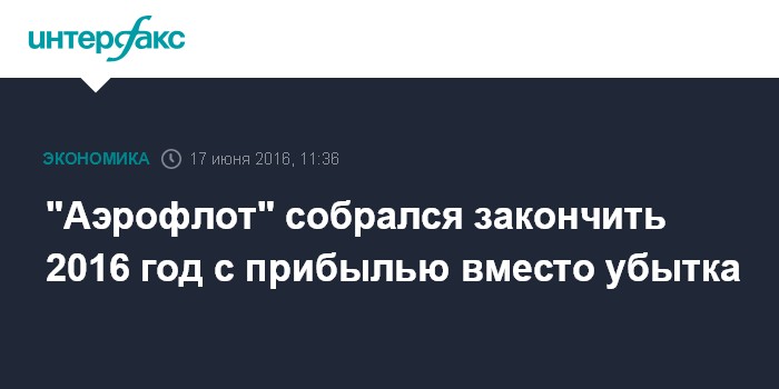 "Аэрофлот" собрался закончить 2016 год с прибылью вместо убытка