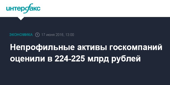 "В части работы с непрофильными активами мы совместно с "открытым правительством", с администрацией президента уделяем большое этому внимание. Для примера, по предварительным подсчетам, балансовая стоимость активов, находящихся в собственности крупнейших организаций, находящихся в государственной собственности, рассчитывается как 224-225 млрд руб.", - сказал он.