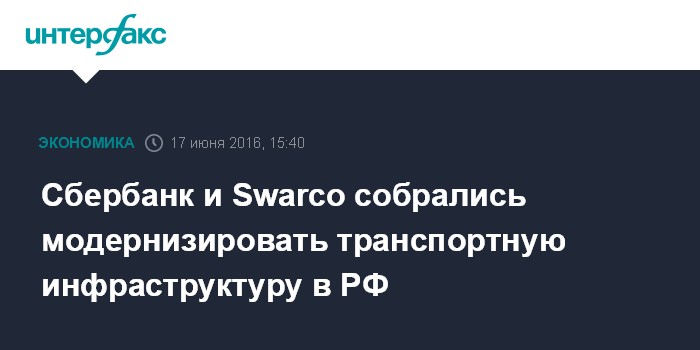Москва. 17 июня. INTERFAX.RU - Сбербанк России и австрийский производитель продукции для строительства дорог и организации дорожного движения Swarco в рамках Петербургского международного экономического форума (ПМЭФ) подписали меморандум о взаимопонимании, предусматривающий "участие в совместных инициативах" и развитие сотрудничества сторон, говорится в пресс-релизе банка.