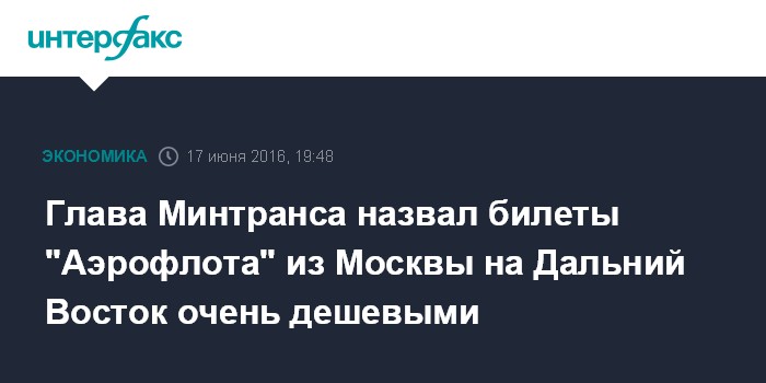 Москва. 17 июня. INTERFAX.RU - Глава Минтранса РФ Максим Соколов считает, что летать по "плоским" тарифам "Аэрофлота" из Москвы на Дальний Восток очень дешево.
