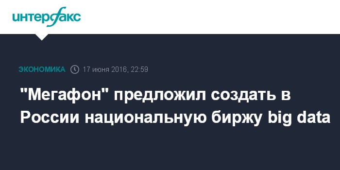 Москва. 17 июня. INTERFAX.RU - ПАО "Мегафон" предлагает создать в России некоммерческую организацию для саморегулирования оборота "больших данных".