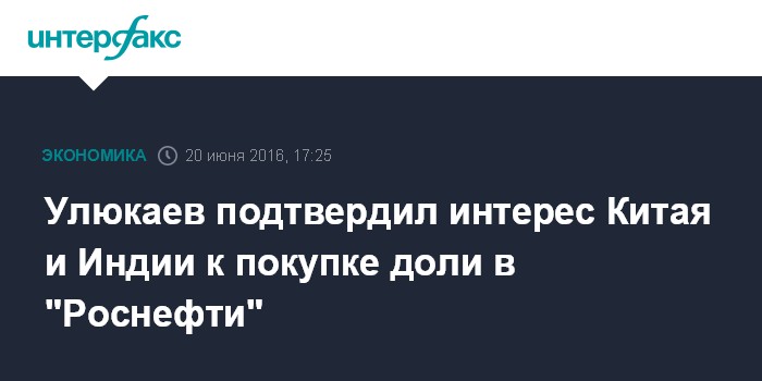 Улюкаев подтвердил интерес Китая и Индии к покупке доли в "Роснефти"
