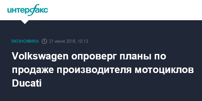 Москва. 21 июня. INTERFAX.RU - Гендиректор Audi Руперт Штадлер опроверг сообщения о том, что Volkswagen AG может продать бренд мотоциклов Ducati в рамках объявленной ранее реорганизации.