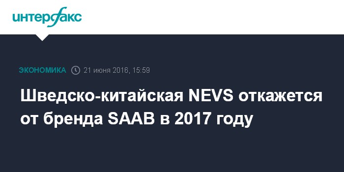 Москва. 21 июня. INTERFAX.RU - Шведско-китайская инвестиционная группа National Electric Vehicle Sweden AB (NEVS) с 2017 года откажется от бренда SAAB и будет выпускать электромобили под новой торговой маркой NEVS на платформе SAAB 9-3, говорится в пресс-релизе NEVS.
