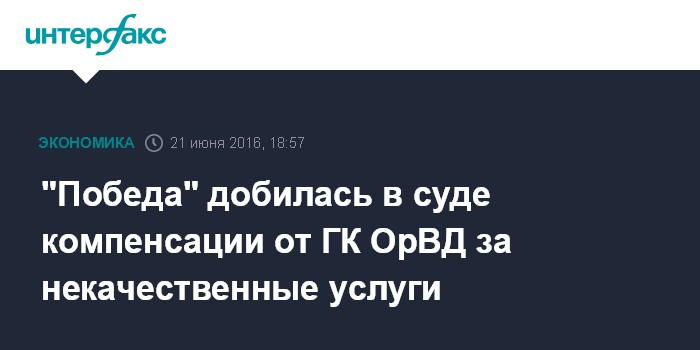 "Победа" добилась в суде компенсации от ГК ОрВД за некачественные услуги