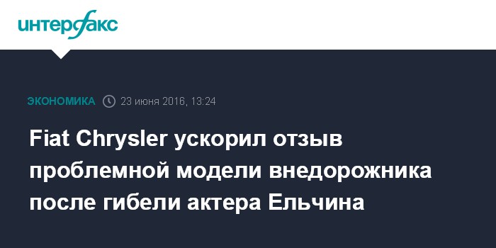 Fiat Chrysler ускорил отзыв проблемной модели внедорожника после гибели актера Ельчина