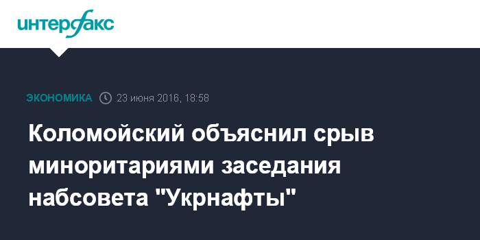 Москва. 23 июня. INTERFAX.RU - Представители миноритарных акционеров отказались от участия в заседании наблюдательного совета (НС) ПАО "Укрнафта" 22 июня по рекомендации юристов, сопровождающий процесс в Стокгольмском арбитраже, сообщил бизнесмен Игорь Коломойский в комментарии изданию "Украинская правда".