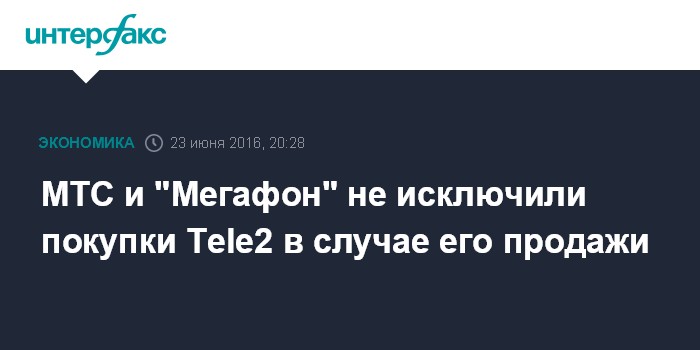 Москва. 23 июня. INTERFAX.RU - ПАО "Мобильные Телесистемы" и ПАО "Мегафон" готовы изучить возможность покупки ООО "Т2 РТК Холдинг" (бренд Tele2) в случае, если актив будет выставлен на продажу.