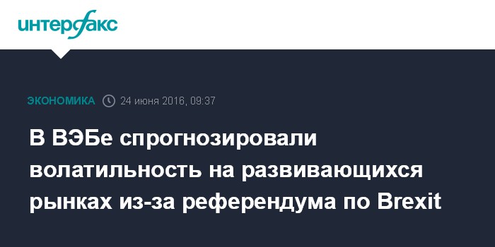 В ВЭБе спрогнозировали волатильность на развивающихся рынках из-за референдума по Brexit