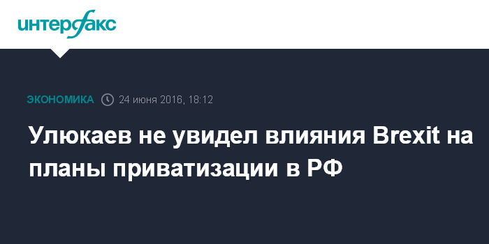 Москва. 24 июня. INTERFAX.RU - Министр экономического развития РФ Алексей Улюкаев пока не видит потенциального влияния Brexit на приватизационные сделки.