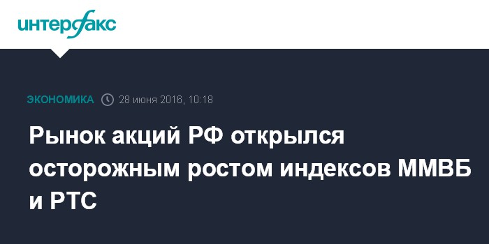 Москва. 28 июня. INTERFAX.RU - Рынок акций РФ открылся во вторник ростом цен blue chips на фоне отскока нефти и мировых фондовых площадок после обвала на новостях о Brexit, индексы РТС и ММВБ за минуту торгов выросли на 0,7-1%.