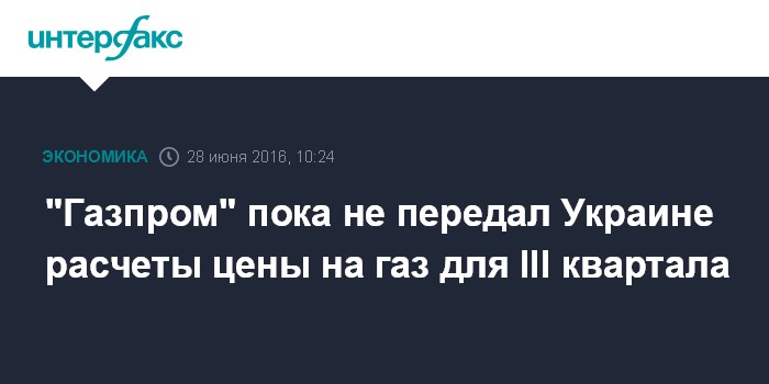 Москва. 28 июня. INTERFAX.RU - "Газпром" пока не предоставил расчетов цены на газ для "Нафтогаза Украины" на третий квартал, ответил журналистам министр энергетики России Александр Новак.