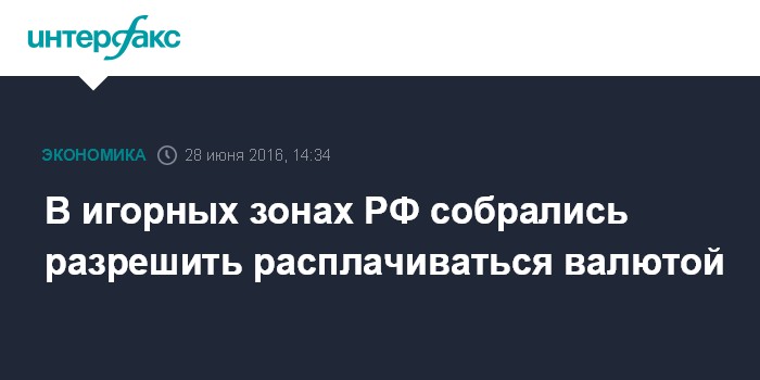 Москва. 28 июня. INTERFAX.RU - Правительство РФ поручило Минфину, Минэкономразвития и Минвостокразвития проработать и представить согласованные предложения о внесении изменений в законодательство РФ, предусматривающих возможность осуществления расчетов в иностранной валюте на территории игорных зон, сообщил "Интерфаксу" источник в финансово-экономическом блоке правительства.