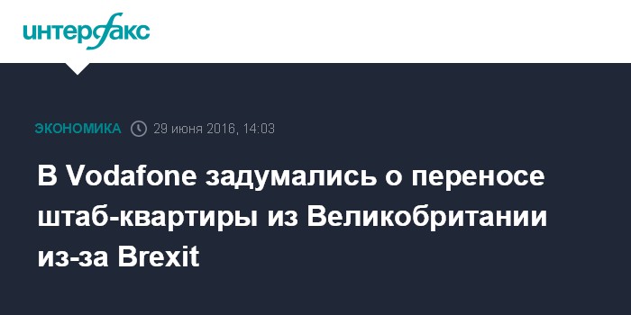 Москва. 29 июня. INTERFAX.RU - Британский оператор мобильной связи Vodafone Group Plc может перенести штаб-квартиру за пределы страны из-за решения Великобритании о выходе из ЕС (Brexit), пишет газета The Wall Street Journal.
