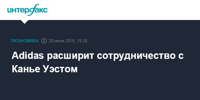 Москва. 29 июня. INTERFAX.RU - Немецкая компания Adidas объявила в среду о расширении сотрудничества с американским рэпером Канье Уэстом, которое будет включать новую линию межбрендовых розничных магазинов и специальную спортивную экипировку, сообщает MarketWatch.