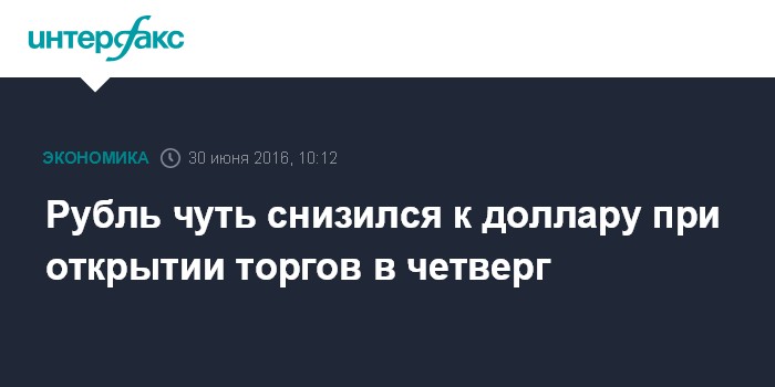 Москва. 30 июня. INTERFAX.RU - Рубль чуть снизился к доллару на Московской бирже в начале торгов четверга.